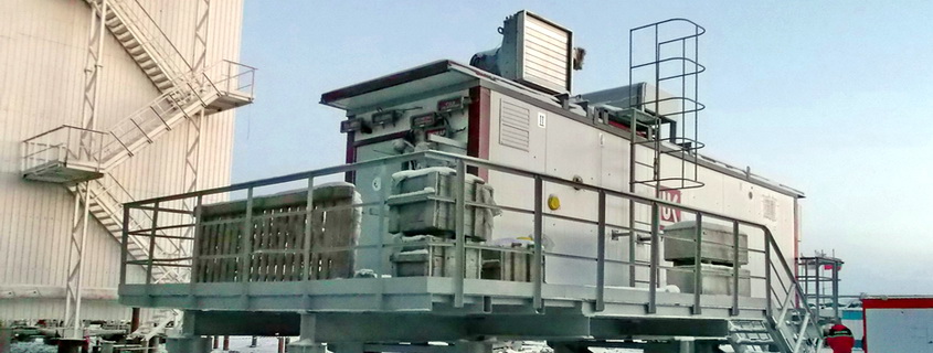 Vostochno-Urengoiskoye field (“Rosneft”). At the site of gas and condensate processing plant there is installed a multi-module fuel gas treatment unit of ENERGAS. FGTU of 8 modules will provide gas supply for more than 10 facilities. Among them there is a gas turbine power plant, a low-temperature separation unit, a boiler room, a condensate stabilization unit, a low-pressure booster compressor station, a methanol recovery unit etc.