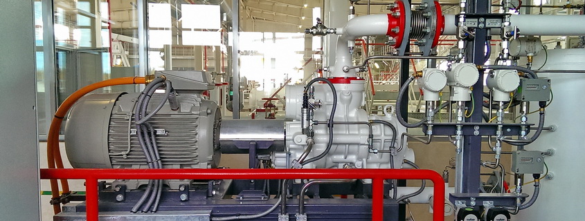 ENERGAS has installed and commissioned nine compressor units (CU, pictured left) in a variety of types and functions for operation as part of a petroleum gas compressor station (PGCS). These are: a low-pressure CU, four medium-pressure units, a CU for deethanization gas, three reciprocating units.