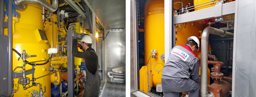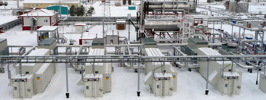 Fuel for the GTPP is associated petroleum gas produced here. Purification, compression and feeding of fuel to the GTU are carried out by the treatment facility for fuel gas comprising two complexes – FGTF-1 and FGTF-2. At the heart of each FGTF is a screw-type compressor unit (CU) in packaged design.