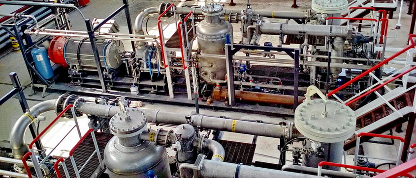 Process equipment provides a high compression ratio: the minimum APG inlet pressure is 0.2 MPa, the specified outlet pressure is 2 MPa. The purification of gas entering the compressors (two-step removal of liquid fractions and solid particles) is carried out by highly efficient coalescing filters-scrubbers with automatic drainage system.