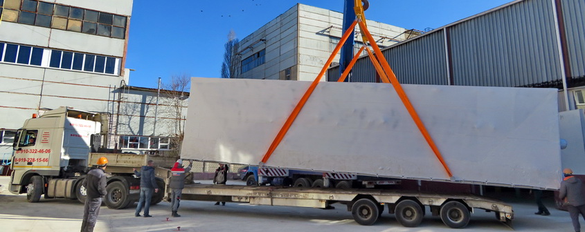 After successful completion of preliminary workshop tests, the FGTF has been shipped and is being transported to the site of power supply complex. The equipment is supplied in maximum factory readiness (98%) what further significantly reduces the duration of the construction and mounting works and pre-start activities.