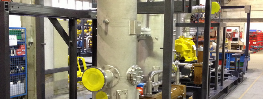 Purification, compression and supply of APG to the gas turbine units under operating pressure of 2.5 MPa will be provided by fuel gas compression facility (FGCF) of the company ENERGAS. FGCF is placed in a separate premise equipped with necessary life support and safety systems, and it consists of the compressor module and gas treatment system.