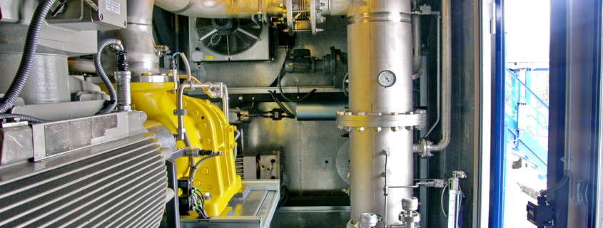 In particular, the gas final purification at the compressor inlet is performed by a highly efficient two-stage filter-scrubber (with a system of automatic drainage) integrated in the process unit's block-module.