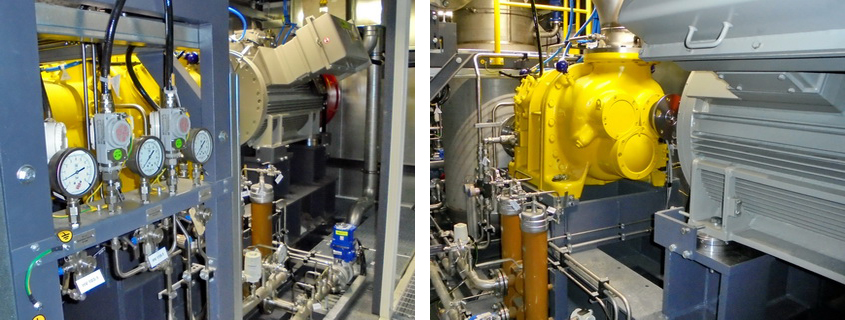 Gas purification at the inlet of compressor is performed by high-efficient separator (two-stage filter-scrubber) with automatic drainage system and pump for condensate discharge. Taking into consideration minus inlet pressure of APG (-0.02 MPa) unit is equipped with oxygen sensor for monitoring its content in a compressible gas.