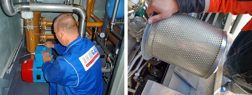 - Replacement of consumables (gas and oil filters, oil in the bearings of the motor);