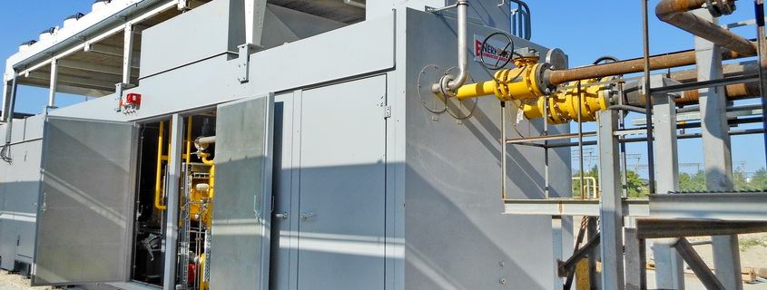 Here there is operates a booster compressor unit of ENERGAS, designed to treat and supply gas to the turbines at a working pressure of 3.8 MPa. Initially, the BCU had a standby status, but afterwards the unit was switched to the basic operating mode and for today carries the main load for the uninterrupted supply of the power plant with high-quality fuel.