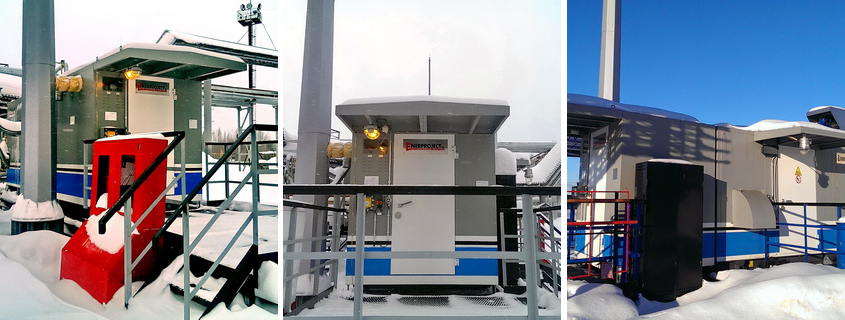 The ENERGAS Group also supplied and commissioned a booster compressor station for the GTPP-12 at Igolsko-Talovoye field. BCS in hangar version provides additional purification, compression and supply of APG to gas turbines of the power plant.
