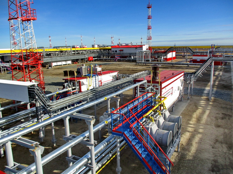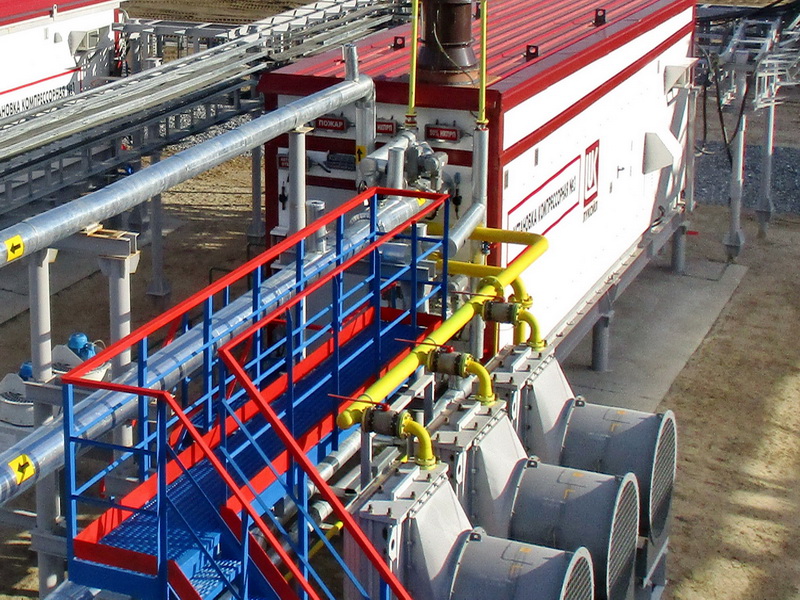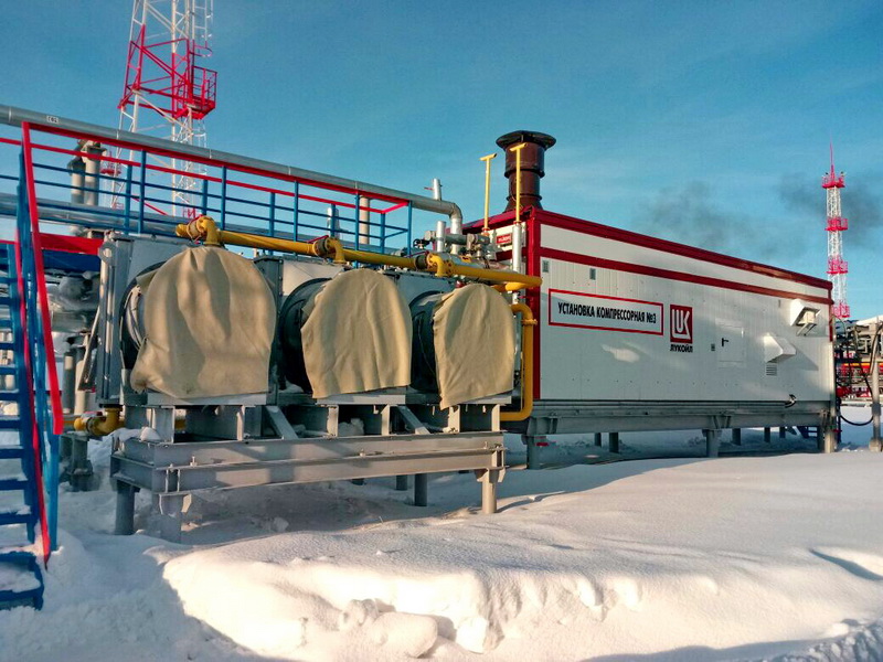 Booster compressor unit to compress gas of condensate de-ethanization as a part of the CS of Pyakyakha field