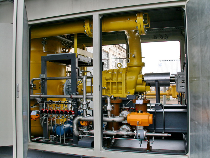 Booster compressor station as a part of the gas treatment system for the GTPP-25P of Ufa CHPP-4 (at the CHPP-1 production site)